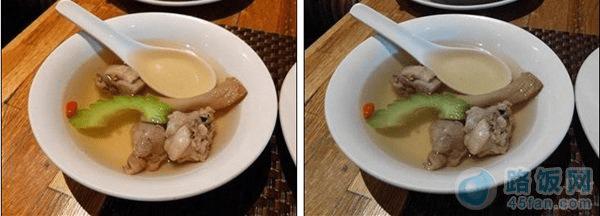 接下来我们在看一组室内美食拍照对比,从两组不同美食照片对比效果来看,左边的魅蓝note色彩表现更加浓郁,红米note色彩表现更加还原现场效果,当然有些时候还原色彩并不讨巧,反而色泽浓郁的魅蓝note照片成像效果更受欢迎,毕竟大家都想看更有食欲的美食。