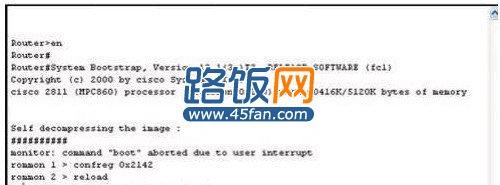 2、输入confreg 0x2142 命令按键,按回车就顺利的执行命令了。