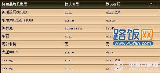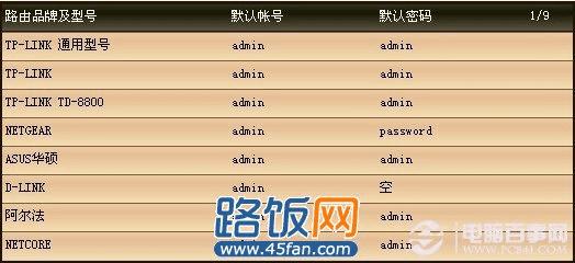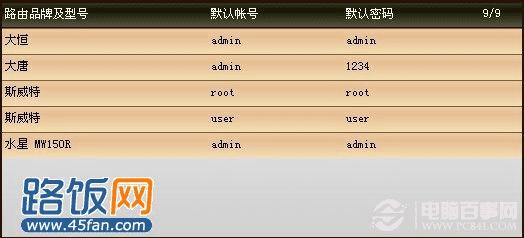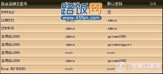 下面笔者将各品牌路由器默认用户名和密码以图片方式分享给各位,希望对您有帮助。