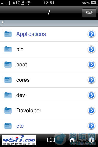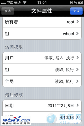 iFile在这里介绍的功能主要是用来修改权限。我们找到想修改权限的文件/文件夹,点击右边的右箭头,拉到下面可以看到访问权限