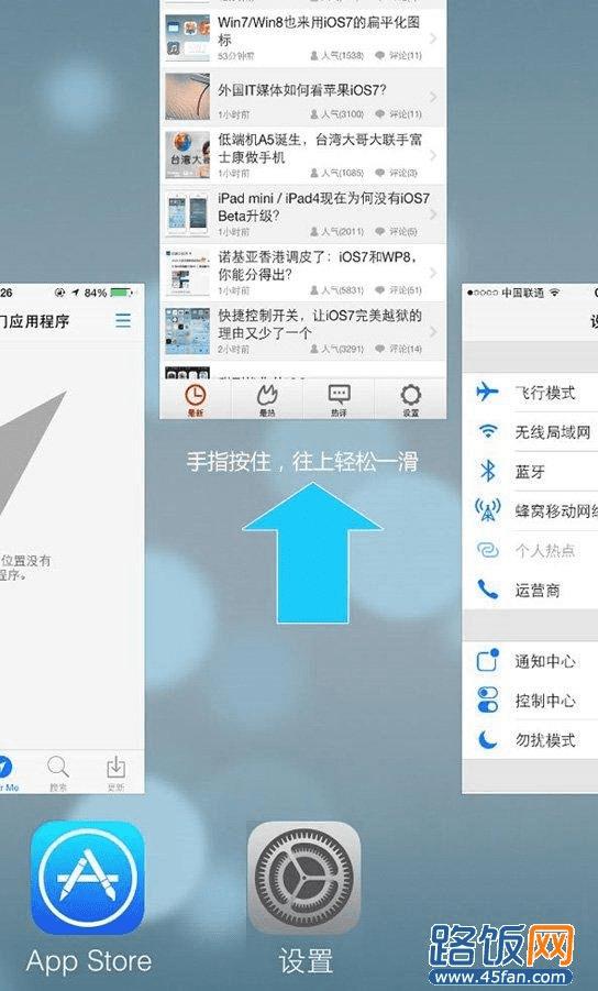 iOS7将关闭应用的操作改为向上滑动有两个好处: