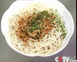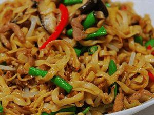 (1)将炒面放入开水中抄一下,别超过1分钟;