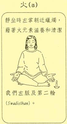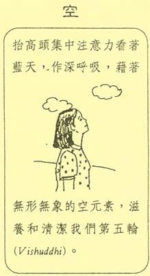 以下的图片所介绍的六种方式,就是Sahaja yoga利用五大元素(地水风火空)清洁轮穴的基本方法。