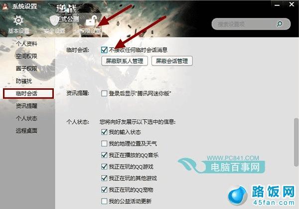 3.把临时会话里面的“不接受任何临时会话消息”前面的勾选项勾上