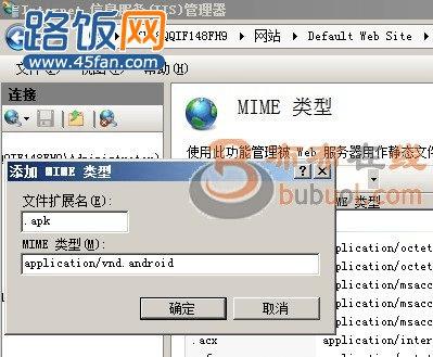 APK是AndroidPackage的缩写,即Android安装包(apk)。APK是类似Symbian Sis或Sisx的文件格式。通过将APK文件直接传到Android模拟器或Android手机中执行即可安装。笔者没有做过统计,但安卓系统绝对算的上是使用用户最多的手机系统,估计目前连iPhone苹果的IOS系统都不及也!所以很多从事网站运营的朋友都开始办起了手机论坛,这些论坛包括安卓软件下载、安卓桌面美化、安卓刷机教程等等。搭建论坛的平台一般采用Windows IIS,而据笔者实验,IIS默认不支持.APK应用程序下载,那该如何解决呢?其实很简单,只需在IIS中的MIME类型中添加.apk扩展名即可。