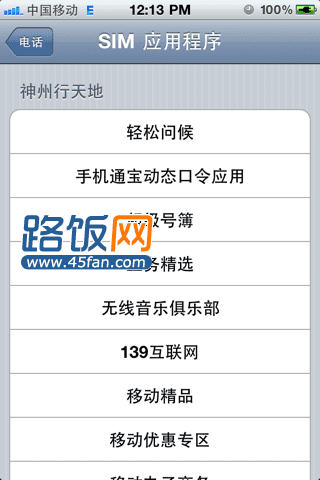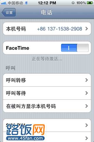 3.上面提到的是WIFI上网教程,接下来教你设置GPRS上网。同上一样,进入设置》电话》开启FaceTime后(如果facetime无任何响应,建议重新插拨SIM卡),点击SIM卡应用程序,选择任意选项后---再点击左上角的“电话”,返回上一级;