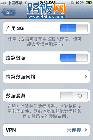 1.打开手机,设置》通用》进入通用设置项后,开启数据漫游、蜂窝数据、启用3G;如下图所示:
