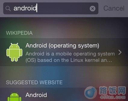 也许你一直没有注意到“Spotlight”搜索,但是一旦你开始使用它,就会很快喜欢上它。在主屏幕上向下滑动即可调出苹果自带的这个搜索工具,它现在变得异常强大和实用,能根据你的搜索查询显示维基百科词条、建议访问的网站、来自iTunes和App Store的内容、本地电影放映时间等信息。此外,它还能在你的消息历史记录、电子邮件和日程提醒中查找信息并迅速返回结果。