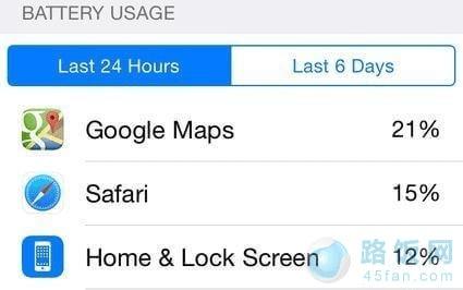 现在,iOS可以告诉你哪些应用最费电,不过这个列表在设置中藏得有点深——点击“general”,然后点“usage”(使用情况),最后点“battery usage”(电池使用情况),才能看到。你可以选择查看在过去24小时内或是过去7天内耗电量最大的应用。