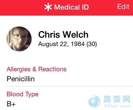 最重要的一项功能放到最后讲——这项简单的功能或许能救你一命,这么说其实一点也不夸张。即便你不打算使用苹果的其他健康功能,你也绝对应该在安装iOS 8之后设立一张Medical ID医疗信息卡片,以备在遭遇突发状况时为急救人员提供快捷参考。Medical ID信息可在手机锁屏时通过紧急呼叫拨号栏调出。