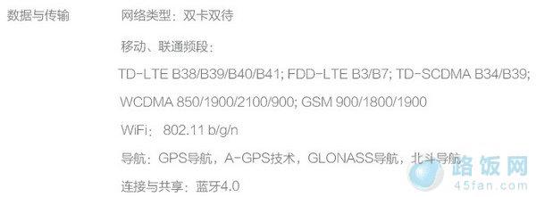 而参数中的网络制式中也没有标注支持电信2G和电信3G。