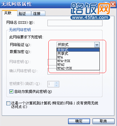 查看系统是否支持该加密方式:“无线网络属性”中选择“关联”,在“网络验证”中查看一下您的系统是否支持路由器中设定的加密方式。
