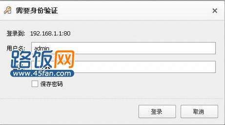 2、确认线路连接好后,在IE地址栏中输入默认管理地址192.168.1.1,随即用户及口令输入admin/admin。