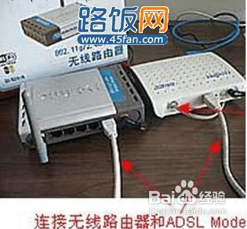 3、开始设置无线路由器上网方式。在浏览器中输入192.168.1.1,然后输入相应用户名和密码,进入设置界面。关于无线路由器怎么设置,详见:http://www.45fan.com/a/wireless/784.html