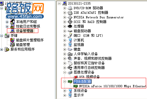 如何知道无线网卡安装是否成功:右击我的电脑---管理,进入计算机管理界面并点击设备管理器,在右边的设备硬件界面的网络适配器中可知道无线网卡是否安装成功。如下图所示: