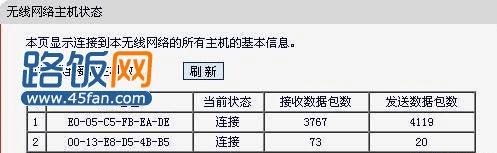然后在配置界面-无线设置-主机状态中查看连接到本无线网络的所有主机的基本信息。