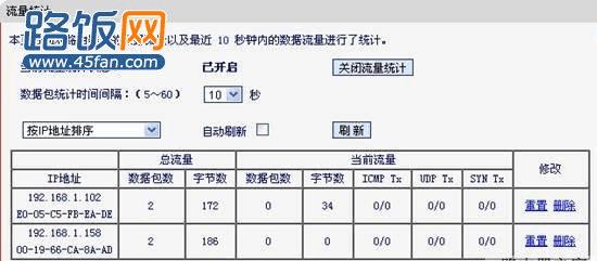 也可进入系统工具-流量统计查看,在里面会有每个IP地址的流量统计。如果当前存在您未分配的IP地址,则说明有非法用户接入。