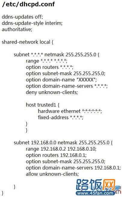 我的邻居正在盗用我的WiFi,唔,对此我可以直接选择加密口令,或者…作为一名极客我也可以耍耍他。那么,我就从划分网络开始吧。我把网络划分成两部分,受信任部分和非受信任部分。受信任部分组成一个子网,而非受信任的部分组成另一个不同的子网。我通过DHCP服务器来辨识MAC地址,以此得到相关的地址信息。