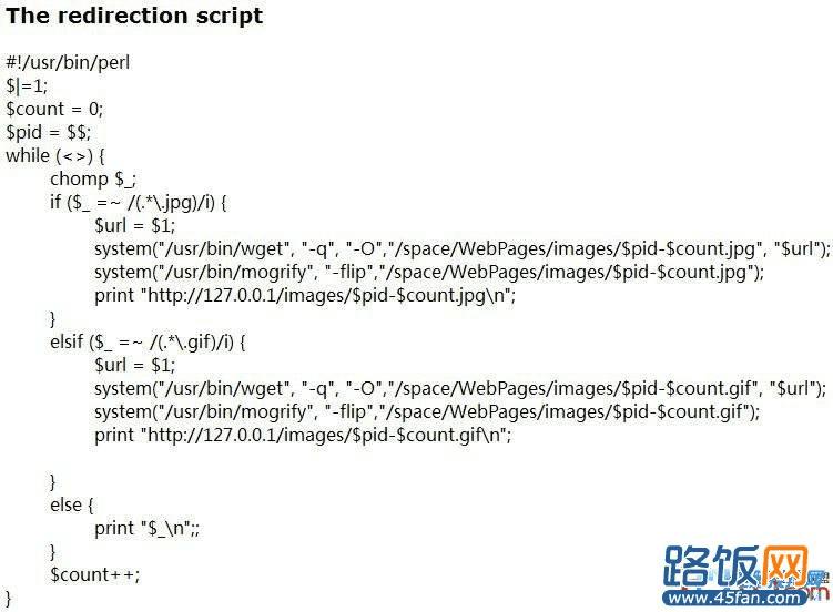 下面就是我的重定向脚本代码,这是个小的perl程序: