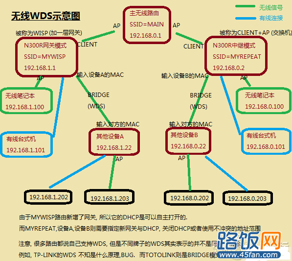 对于路由器大家应该很多人在用!尤其是无线路由器!下图是一张局域网无线WDS示意图,也算是小编的一点经验,分享给大家!