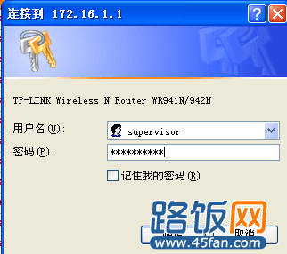 1、登陆TL-WR941N无线路由器管理界面中去。使用172.16.1.1(考虑到安全方面的影响,故将原默认网关192.168.1.1改为172.16.1.1),然后输入用户名和密码(supervisor/supervisor)。