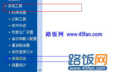 2、登陆进入后,点左侧菜单栏并将滑动条拖至最下面“系统工具”---“系统日志”,如下图所示:
