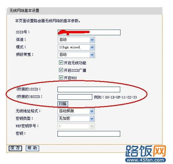 第六、主路由器和信号扩展路由器要把MAC地址互填。(无线设置---基本设置---开启WDS---BSSID应该上对方路由器的MAC)。