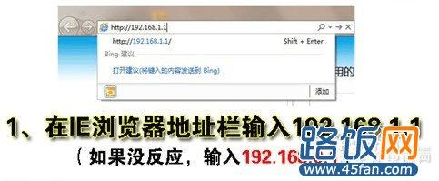 连接好之后,打开浏览器,使用IE,在地址栏中输入192.168.1.1进入无线路由器的设置界面。
