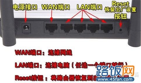先来了解一下无线路由器的各个接口吧,基本上无线路由器都大同小异,Reset按钮的不一定一致。