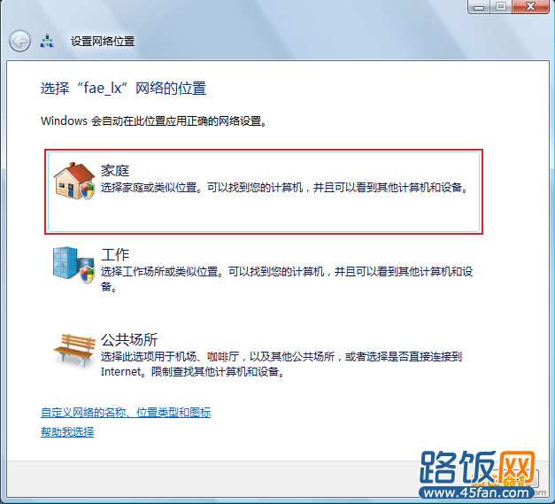 然后点击“关闭”,此时系统会提示您“fae_lx”的网络位置。如果您是在家里面,选择“家庭”即可。 pdfgoword.com