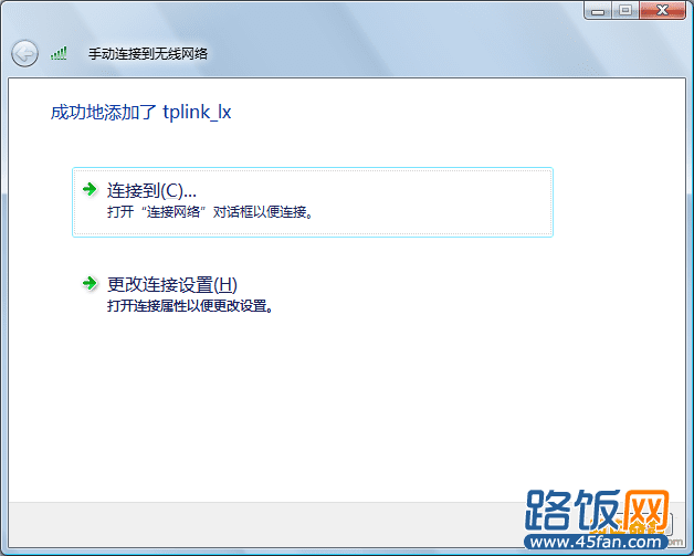 此时点击“下一步”则成功的创建了一个无线配置文件。如下图所示: