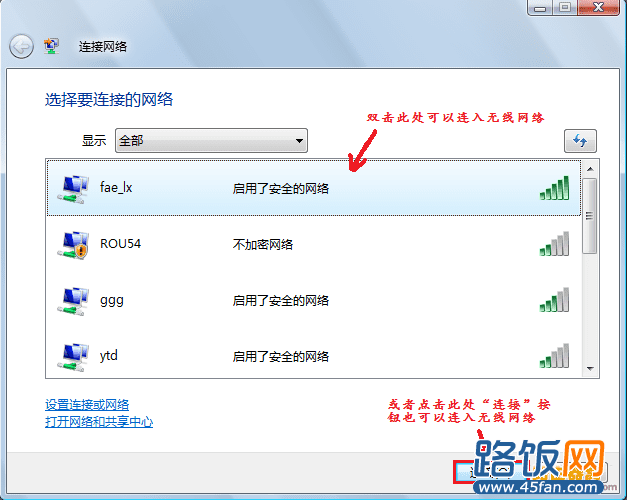 然后,在右侧可用的网络列表中选择您想要连入的无线网络。如下图所示: