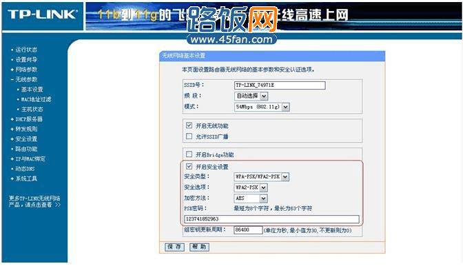图:TP-LINK的无线路由器的WPA-PSK/WPA2-PSK安全设置