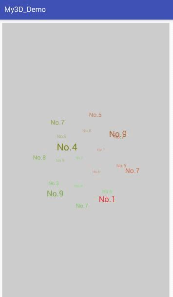 <?xml version="1.0" encoding="utf-8"?> <android.support.constraint.ConstraintLayout xmlns:android="http://schemas.android.com/apk/res/android" xmlns:app="http://schemas.android.com/apk/res-auto" xmlns:tools="http://schemas.android.com/tools" android:layout_width="match_parent" android:layout_height="match_parent" tools:context="com.example.administrator.my3d_demo.MainActivity"> <com.moxun.tagcloudlib.view.TagCloudView android:id="@+id/tag_cloud" android:layout_width="match_parent" android:layout_height="match_parent" android:layout_margin="10dp" app:autoScrollMode="uniform" app:darkColor="#ff00ff00" app:lightColor="#ffff0000" app:radiusPercent="0.5" app:scrollSpeed="3" /> </android.support.constraint.ConstraintLayout>