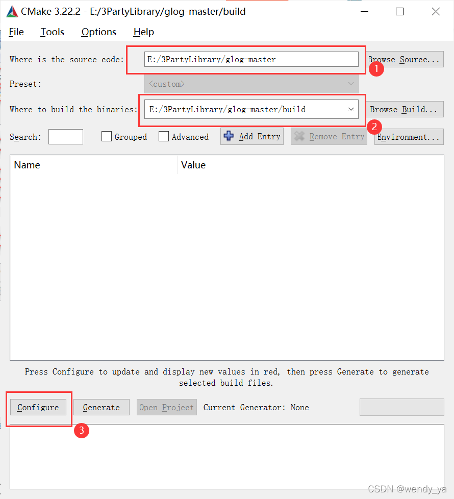 然后使用cmake-gui生成VS解决方案。如下图所示。
