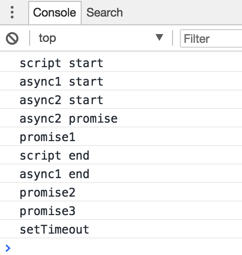});另外,对于Promise的链式调用,如new Promise(....).then(...).then(...)....,一次只放第一个then的内容进入Microtask,等第一个then执行的时候,会把第二个then放入Microtask,而不是一次把两个then都放进去。