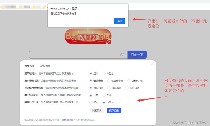2、因为这种弹窗是不属于HTML的元素的,它是属于浏览器自带的弹窗(是由JavaScript生成的),所以用定位元素的方法是定位不了的