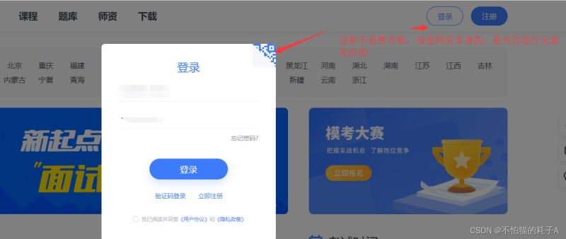 3、比如点击[登录]按钮,会弹出一个小面板(网页层级之上的页面)。这种不是对话框。而是网页本身的一部分,这种是可以使用元素定位的