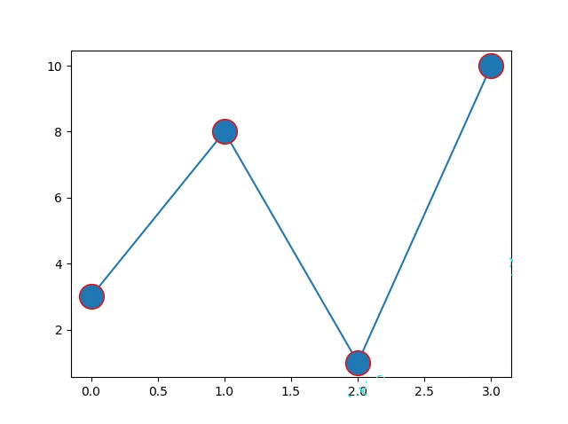 import matplotlib.pyplot as plt import numpy as np ypoints = np.array([3, 8, 1, 10]) plt.plot(ypoints, marker = 'o', ms = 20, mec = 'r') plt.show()