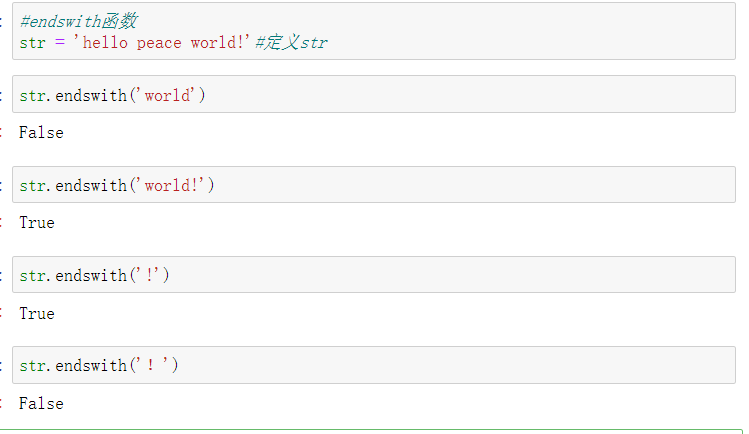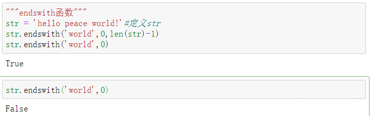结果解释:字符串后缀不是则返回为false否则返回true。字符要区分中英文,字符串str的感叹号是英文字符,所以判断后缀是否为中文字符串时返回结果值为false。