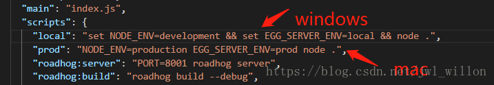 mac => shell :NODE_ENV=production 空格 xxxx