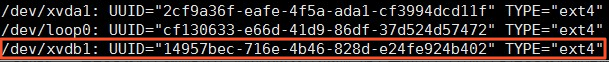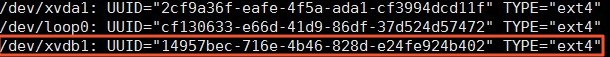 /dev/xvdb1 /mydata ext4 defaults,nofail 0 0