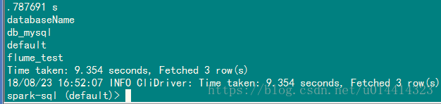 完成。(查看数据库 spark-sql (default)> show databases; ,它操作的都是Hive)