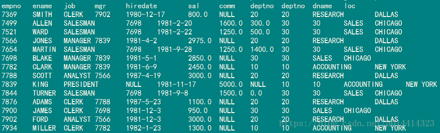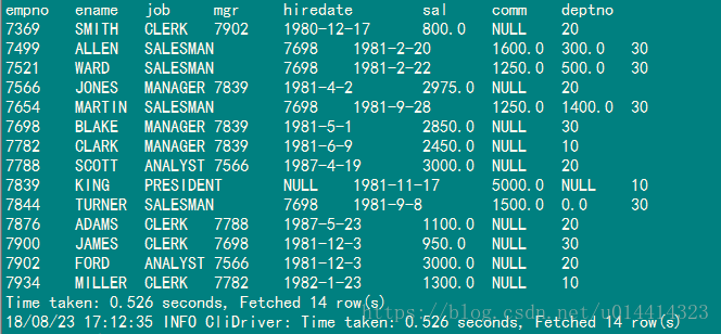 spark-sql (default)> select a.*,b.* from emp a left join dept b on a.deptno = b.deptno;