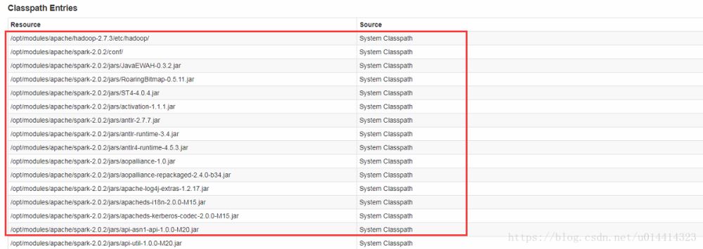 在我们的4040页面Environment节点下的Classpath Entries节点里可以看到我们服务所依赖的jar包。http://hadoop01.com:4040/environment/