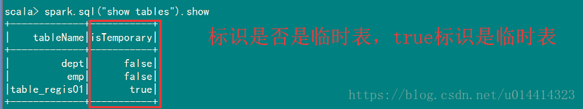 scala> spark.sql("show tables").show //通过SQL语句进行操作