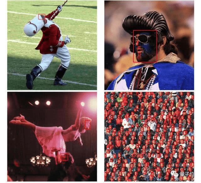 △红色框是PyramidBox的检测效果,可以看出PyramidBox对于姿态、模糊、遮挡、尺度等条件具有极强的鲁棒性。