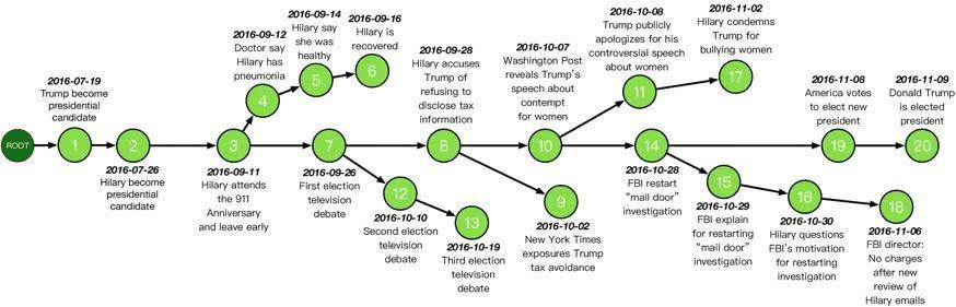 图 3.「2016 年美国总统大选」的故事树,树中的每一个节点代表一个事件