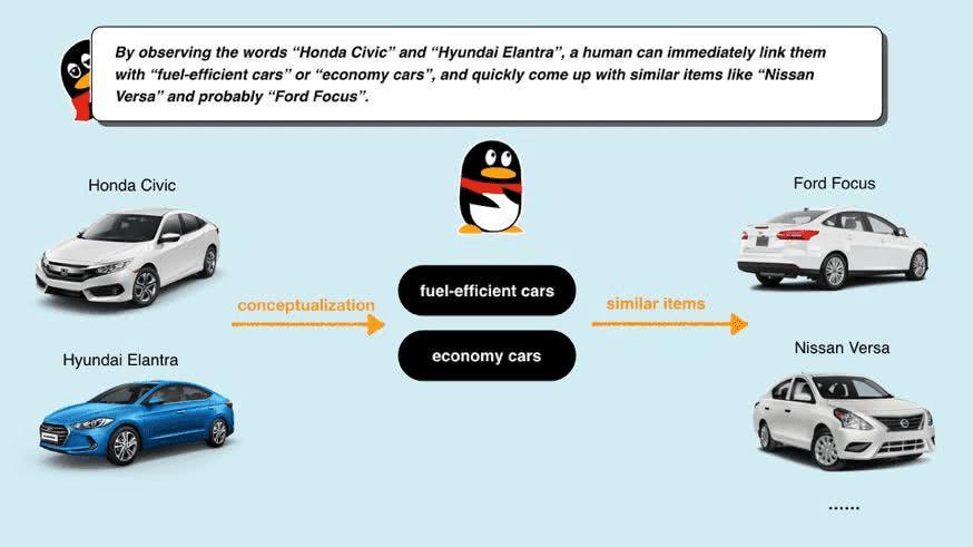 概念蕴涵了世界的知识,促进了人类的认知过程。从文档中提取概念并构建它们之间的联系对于文本理解以及下游任务有着重要的作用。认识「概念」(concept)是人类认识世界的重要基石。例如,当看到本田思域(Honda Civic)或者现代伊兰特(Hyundai Elantra)时,人们可以联想到「油耗低的车」或者「经济型车」这类的概念,并且能进而联想到福特福克斯(Ford Focus)或者尼桑 Versa(Nissan Versa)等车型。