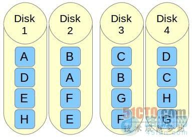 •o表明offset拷贝。不是数据段在条带里面复制,而是整个条带被复制,但由一个设备轮转,那样重复数据块分布在不同的设备上。因而,随后的数据块拷贝在下一个驱动器中,下移一个数据段。想让你的RAID 10阵列使用这种布局,将--layout=o2添加到用来构建阵列的命令。